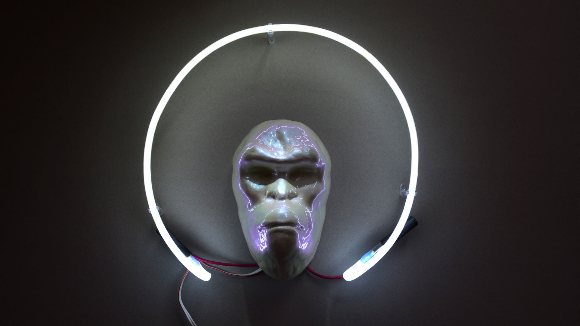 The exhibition organized by ArtUp presented three multimedia objects that were placed in chronological order on the wall in the street. The first object was the monkey with a nimbus, which marked the primitive origins of human in which he often feels comfortable, refuses to develop, and remains at the level of those origins. The second object involved the accumulation and circulation of energy and knowledge, which creates new sensations, a new world, and qualitatively exceeds the status and intellect that existed before. And the third culmination object is the metaphorical image of a human who eventually enters the cycle of self-development and becomes an agent of a powerful superintelligence. The open-air exhibition proved quite impressive as it became more accessible to passers-by on the street. I think the exhibition was a success because even people who happened to be on Orbeliani Square occasionally, stopped and wondered what was the idea of my artworks.
